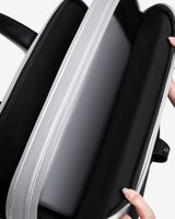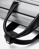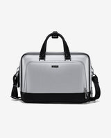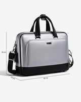 Blending modern design with high functionality, the Zuciani Men’s Briefcase in gray represents the image of a refined, professional gentleman. This versatile piece combines luxury and practicality, delivering a premium experience for any journey. The exterior features a smooth, subtly reflective surface crafted with precision — resistant to scratches and light water exposure, maintaining a sleek, contemporary look. The soft black leather handles are secured with polished metal connectors, providing a firm grip and a stylish contrast. A leather strap lock keeps the handles neatly in place when traveling or mounted on luggage. The wide adjustable shoulder strap includes a padded anti-slip leather cushion to reduce pressure for all-day comfort.