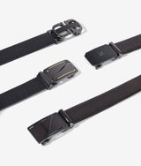 Grip auto lock buckle with various buckle head design crafted by the finest crock like embossed leather material. Attentions to every detail from high quality silver metal accessories to stitching, diamond decor stitching run along inner face and well finished edge for this modern piece.