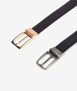 Reversible tongue buckle design crafted with the finest double sided leather. Attentions to every detail from well finished metal accessories to stitching and clean painted edge for this modern classic.