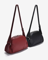 Zuciani Shoulder Bag with a softly rounded form, featuring a unique folded base design that creates a refined highlight. The slim strap can be adjusted flexibly in length, suitable for both shoulder and crossbody wear. A secure zipper closure and spacious compartment meet everyday needs. Available in two colors, black and red, easy to match with elegant outfits or fashionable, edgy styles—ideal for work, strolling, or gatherings.