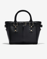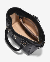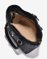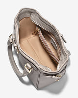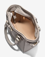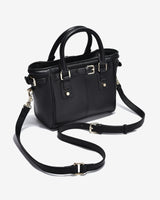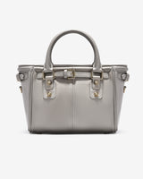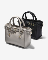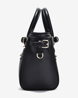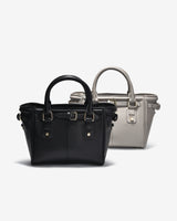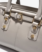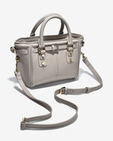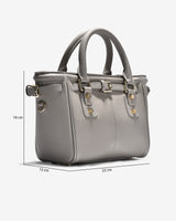 Zuciani Handbag with a structured form, featuring double top handles combined with a refined clasp and gold-plated metal rings for a luxurious touch. Meticulous stitching and a decorative strap running across the body enhance its modern elegance. The spacious compartment is designed to hold daily essentials with ease. Presented in neutral gray and black tones, it pairs effortlessly with office wear, evening attire, or casual outings.