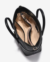 Zuciani Handbag featuring a distinctive embossed texture that creates a luxurious and stylish visual effect. Sturdy double handles are paired with a central gold-tone turn-lock closure and a refined leather strap running across the body for a subtle highlight. Designed with a spacious form and reinforced flat base, the bag pairs seamlessly with office wear, dresses, or chic casual outfits—ideal for work, social events, or city strolls.