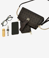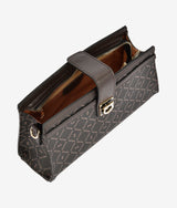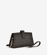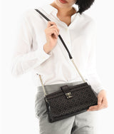 Snap open back clutch like shoulder bag having rectangular shape, edgy front fault lock creates fun factor. Simple two stripes in different texture complement the original material. Two detachable straps for multiple styling purpose.