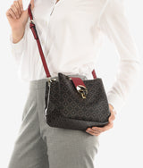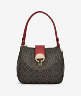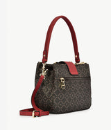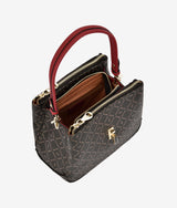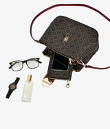 Tripple Zipped Handbag kept in form with wine red colour brightening up the original material. Large folded thick band complementing the whole look. Large round swipe lock modernizes this basic piece.