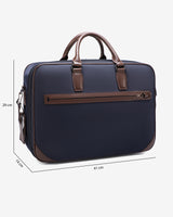 The lightweight design features a sturdy wrapped handle, flexible straps, and an outer zip pocket for quick access. A neutral color palette combined with leather accents gives it a professional appearance, making it suitable for both work and daily commutes.