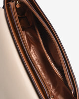 The medium-sized horizontal silhouette is paired with a minimalist metal clasp, maintaining a polished yet refined look. Its single long strap allows for effortless shoulder wear, making it suitable for both office attire and casual outings.