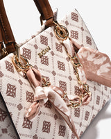 A silk scarf draped softly over the handle adds a graceful touch, lending lightness to the overall design and enhancing its refined femininity. A simple bag that leaves a lasting impression—gentle, sophisticated, and truly memorable.