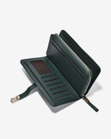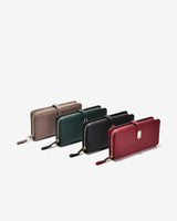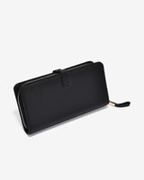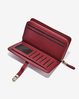 Zuciani The Dreamer Leather Clutch Wallet is crafted from genuine leather with a naturally grained texture, offering timeless elegance and long-lasting durability. The sleek long design is highlighted by a gold-tone metal clasp adorned with delicate stones, paired with a secure zipper closure. Inside, multiple spacious compartments provide convenient storage for cash, cards, and documents. Perfect for work, parties, or casual outings, this clutch enhances a refined and modern style.