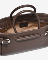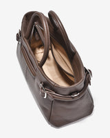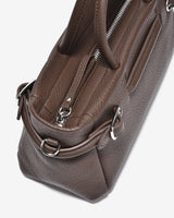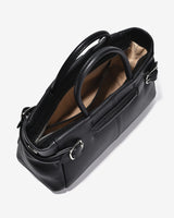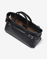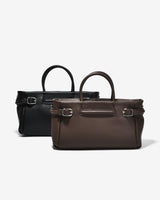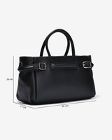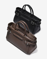 The East–West top-handle handbag stands out with its modern horizontal silhouette, delivering a refined and elegant aesthetic. Crafted from genuine pebbled leather, the supple surface ensures excellent structure and long-lasting durability. Rounded top handles with a balanced width provide a comfortable grip while enhancing the bag’s sophisticated character. A distinctive feature lies in the side metal strap details, which add visual interest while allowing adjustable opening for greater flexibility in use. Finished in classic black and brown tones, the bag pairs effortlessly with looks ranging from polished office wear to elegant everyday styling.