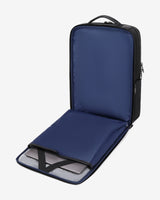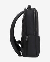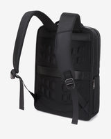 This backpack features a design that embodies a masculine and dynamic spirit. The neutral black tone, paired with sharply defined details, creates a strong and streamlined overall look. A sturdy exterior, metal zippers, and a built-in side connectivity port contribute to its modern, functional appeal.