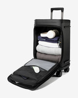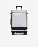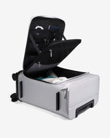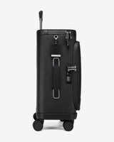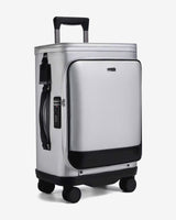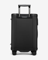 The silhouette of the suitcase evokes a classic spirit through its squared proportions, subtly refined with minimalist lines that reflect a contemporary touch. The surface is divided into clear panels, creating a visual rhythm between flat and raised sections. A sturdy build pairs with smooth-rolling wheels, ensuring effortless mobility in various situations. Inside, the spacious compartment allows for easy organization—ideal for journeys that demand flexibility while preserving a sense of elegance in every detail.