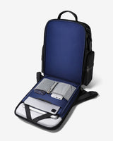 An Airtag holder adds smart functionality, while the dedicated padded compartment keeps your tech devices safe. Additional interior pockets are designed for documents, chargers, toothbrushes, phones, and earbuds. The wide ergonomic shoulder straps with secure locking buckles provide extra stability during movement.
