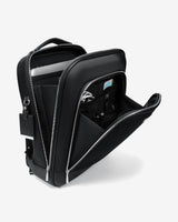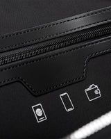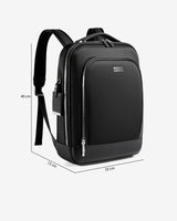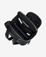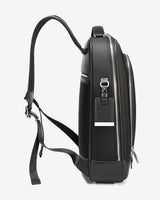 This premium backpack is designed for gentlemen who appreciate minimalism with a touch of sophistication. Measuring 40×33×13 cm, it features a smooth, dust-resistant surface that maintains its structured form even with constant movement. The sleek metallic zippers run symmetrically along the front, creating a refined visual balance, while the leather Airtag holder with metal detailing on the side adds both style and practicality — ideal for holding a tracking tag or business card.