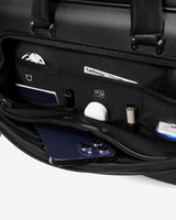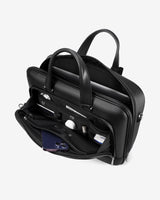 This premium men’s briefcase embodies a minimalist design with maximum functionality. Every detail is crafted to meet the fast-paced lifestyle of modern businessmen — those who value efficiency, organization, and refined elegance in every moment. The wide padded leather shoulder strap ensures comfort even during long commutes, while the 360° swivel alloy clasps provide flexibility, easy detachment, and enhanced durability. The exterior combines premium microfiber leather and technical leather, offering a sleek, structured form that is scratch-resistant and water-repellent for long-lasting shape retention.