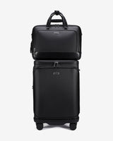 The briefcase features two separate main compartments: the front organizer pocket allows quick access to essentials such as cards, wallets, passports, chargers, or AirPods, while the back compartment includes a shockproof padded section that fits a 16-inch laptop with a securing strap to keep devices stable. The rear luggage strap ensures easy attachment to suitcases, making it ideal for business trips or flights. Every detail — from the polished metal zippers and dual leather handles to the curved edges — reflects precision craftsmanship and timeless sophistication.