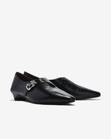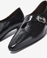 Zuciani Women’s Loafers feature an elegant pointed toe crafted from soft, lightly glossy genuine leather with natural pleated texture for a classic–modern look. The polished metal buckle adds a refined highlight and adjusts easily for a better fit. A low, sturdy heel ensures comfort, pairing effortlessly with tailored pants, midi skirts, or long coats for office or fall-winter occasions.
