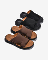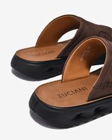 Zuciani men’s sandals embrace a minimalist style with premium matte leather featuring natural grain. The wide cross strap provides a secure fit, while the flexible rubber sole ensures agility. Enhanced with ultra-soft cushioning, every step feels light and comfortable. Offered in deep masculine tones, they are the perfect choice for daily walks or casual meet-ups.