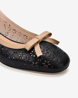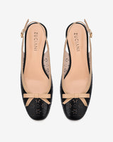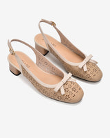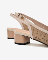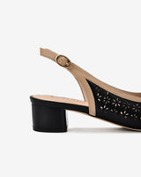 Classic sling back design with modern touch of laser cut, high class leather for all day comfort, supplementary color edges highlighting this originals. Block heels providing strong support suitable for daily basis.