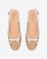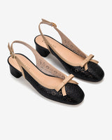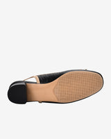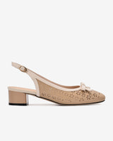 Classic sling back design with modern touch of laser cut, high class leather for all day comfort, supplementary color edges highlighting this originals. Block heels providing strong support suitable for daily basis.