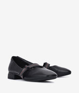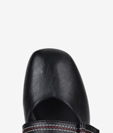 This elegant pumps with attractive horizontal strap accented by meticulous black and red stitching lines adds interest to your feminine style. High quality leather upper and lining together with soft padded insole offer extra comfort to this graceful design.