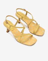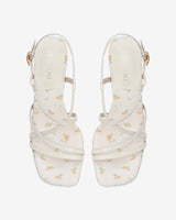 Modern breath of freshness with small floral print, fine multi- cross straps for great summer kick. Thin heels with square point providing strong supports and supper thick sole for all days comfort.