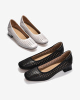 Zuciani high heels feature a light block heel, soft rounded toe, and finely perforated upper for maximum breathability. Crafted from premium leather for a snug fit, with cushioned insoles for all-day comfort.
