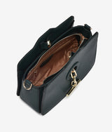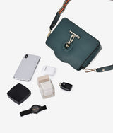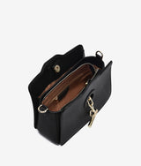 Minimalist, the key of every modern woman represent through Infinite No.1 small shoulder bag. Hard construction cut on pebbled textured mirofiber leather, center circle decorated with junky metal chain design focus brighten this elegant. Two straps designed for stylish user and expose magnet closure enhances three storage pockets.