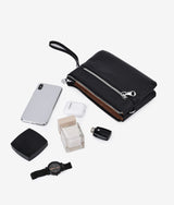 Infinite No.3 constructed in small versatile form, combination of clutch and cross body. Cut on high quality leather with two main storages. Modern silver accessories and two straps style supporting all day activity.