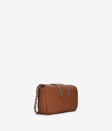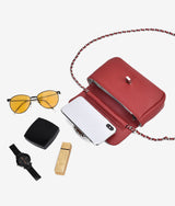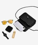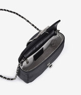 Constructed on soft leather in extra small form with chained weave trims front band adding an edge to this miniature. High quality silver ware and lock lighten up the design and one main pocket maximizing storage space.