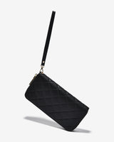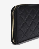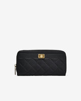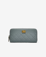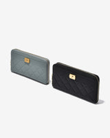 This long wallet features an elegant design accented by a striking metallic clasp, adding a modern touch. The softly rounded corners and concealed zip-around closure provide both security for the inner compartments and easy pairing with various styles.