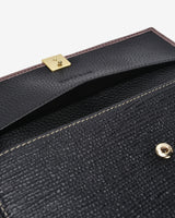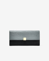 This long wallet features a modern two-tone design with a uniquely embossed surface that adds a stylish and distinctive touch. The minimalist flap is accented by a small square metallic clasp — subtle yet elegant. Perfect for carrying by hand or neatly storing in a handbag, it's ideal for those who embrace a minimalist yet standout style.