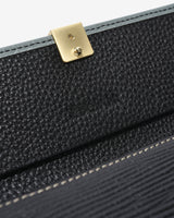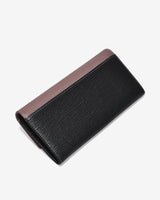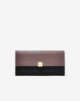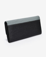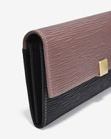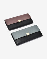 This long wallet features a modern two-tone design with a uniquely embossed surface that adds a stylish and distinctive touch. The minimalist flap is accented by a small square metallic clasp — subtle yet elegant. Perfect for carrying by hand or neatly storing in a handbag, it's ideal for those who embrace a minimalist yet standout style.