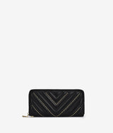 Designed with classic zip around long wallet form, Light up N.04 constructed on quilted surface and embellish with small round stud along quilted line. Inside storage complementing all essential need.