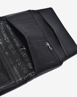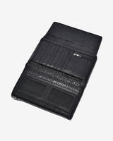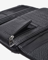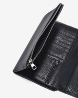 This men's clutch wallet features a classic folding design with a sleek horizontal silhouette, enhanced by a pebbled embossed leather surface that offers a luxurious look and lasting durability. The interior is thoughtfully arranged with clearly separated compartments to hold a phone, documents, cash, and bank cards. A discreet top zipper adds an extra layer of security throughout use. Slim and easy to carry, the wallet serves as a refined accessory that complements both formal and office attire.