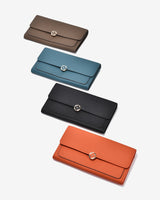 Zuciani The Dreamer N.25 Clutch Wallet is crafted from genuine leather with a luxurious natural grain, offering a refined and durable look. The modern flap design is highlighted with an elegant floral-shaped metal clasp. Inside, multiple spacious compartments allow for convenient organization of cash, cards, and documents. Perfect for social gatherings or daily use, this wallet completes a polished and contemporary style.