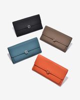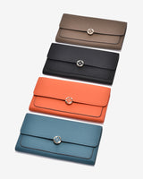 Zuciani The Dreamer N.25 Clutch Wallet is crafted from genuine leather with a luxurious natural grain, offering a refined and durable look. The modern flap design is highlighted with an elegant floral-shaped metal clasp. Inside, multiple spacious compartments allow for convenient organization of cash, cards, and documents. Perfect for social gatherings or daily use, this wallet completes a polished and contemporary style.