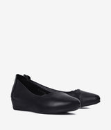 Crafted from high quality genuine leather and soft footbed ensure comfort in pair. Wavy pattern round toe and wedge heels bring up intricacy of the design and extend the feminine elegance in all occasions.