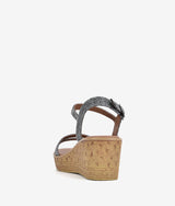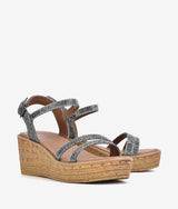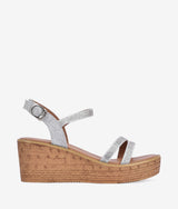 Shine your elegant style with this pair of shimmering sandals, featuring attractive straps with crystal accents. Adjustable buckle closure and solid rubber wedge heel support durability and all-day comfort. Shiny gem line along the footbed completes this feminine design with a delicate touch.